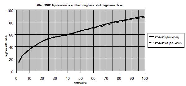 AT-A-B101 (Gravitációs, önszabályzó belső elem)+ AT-A-K101 (Standard lapos külső rács) elemekből álló szett. Amely alkalmas általános célú szellőztetésre, és égési levegő biztosítására is. AT-G35-R-F: